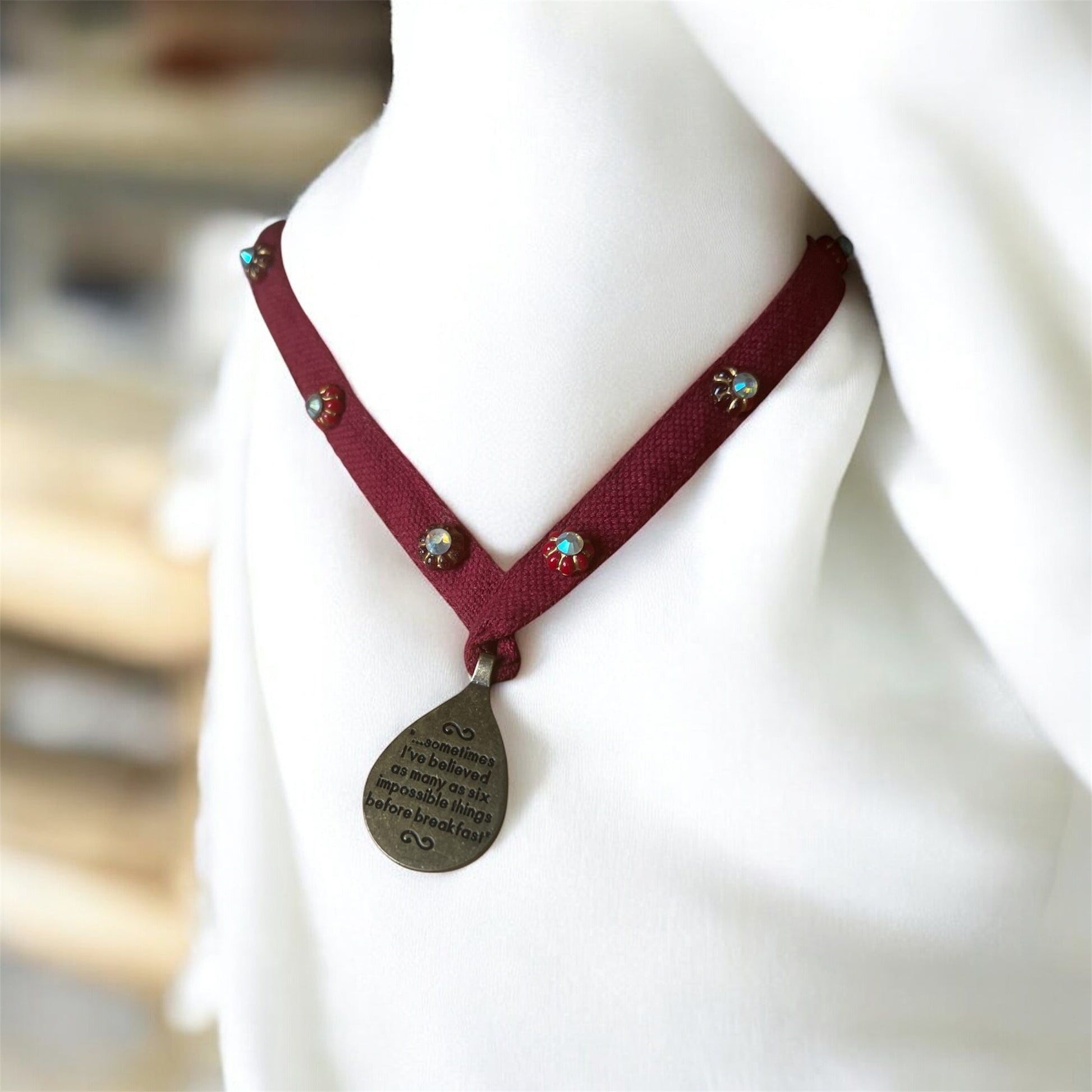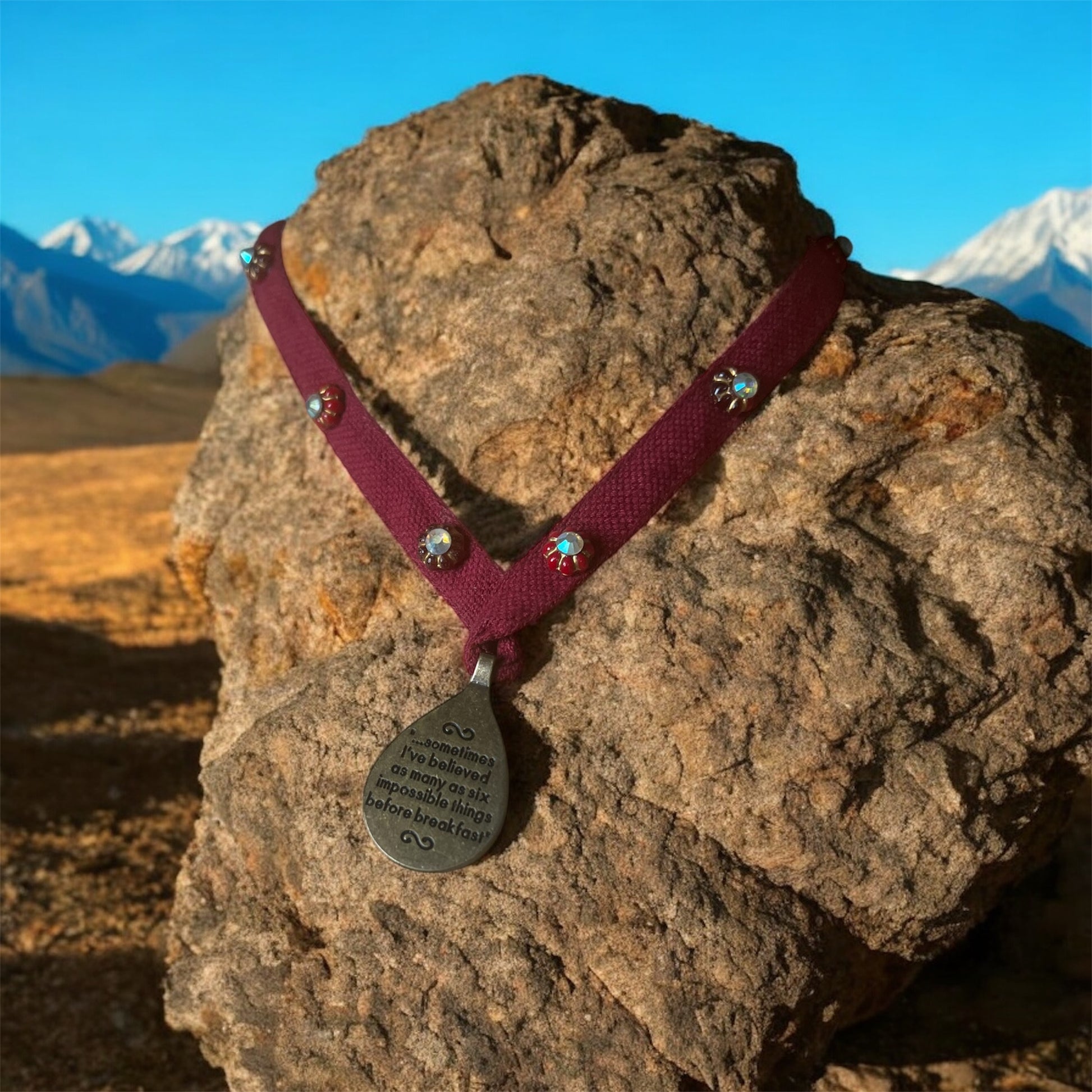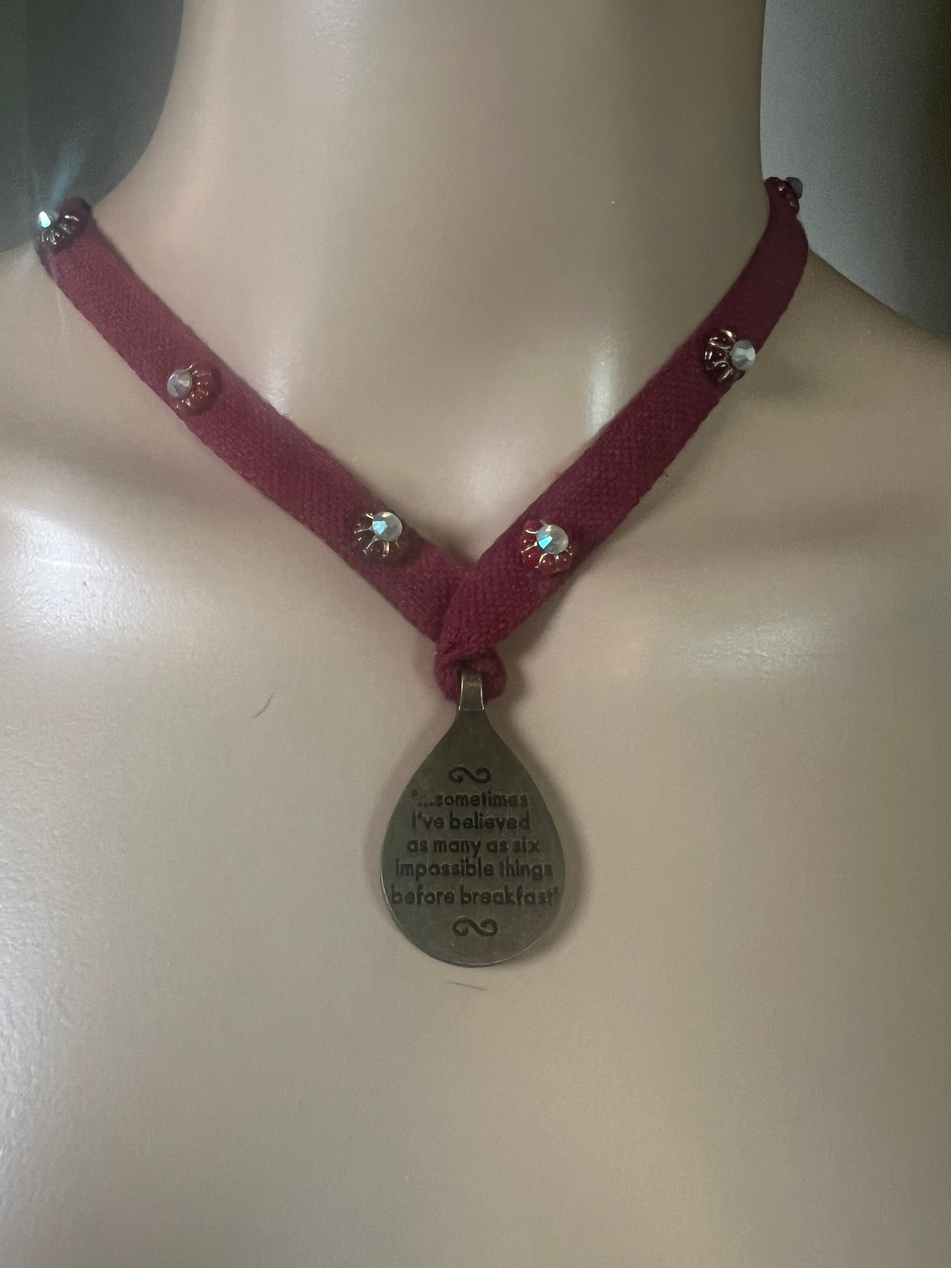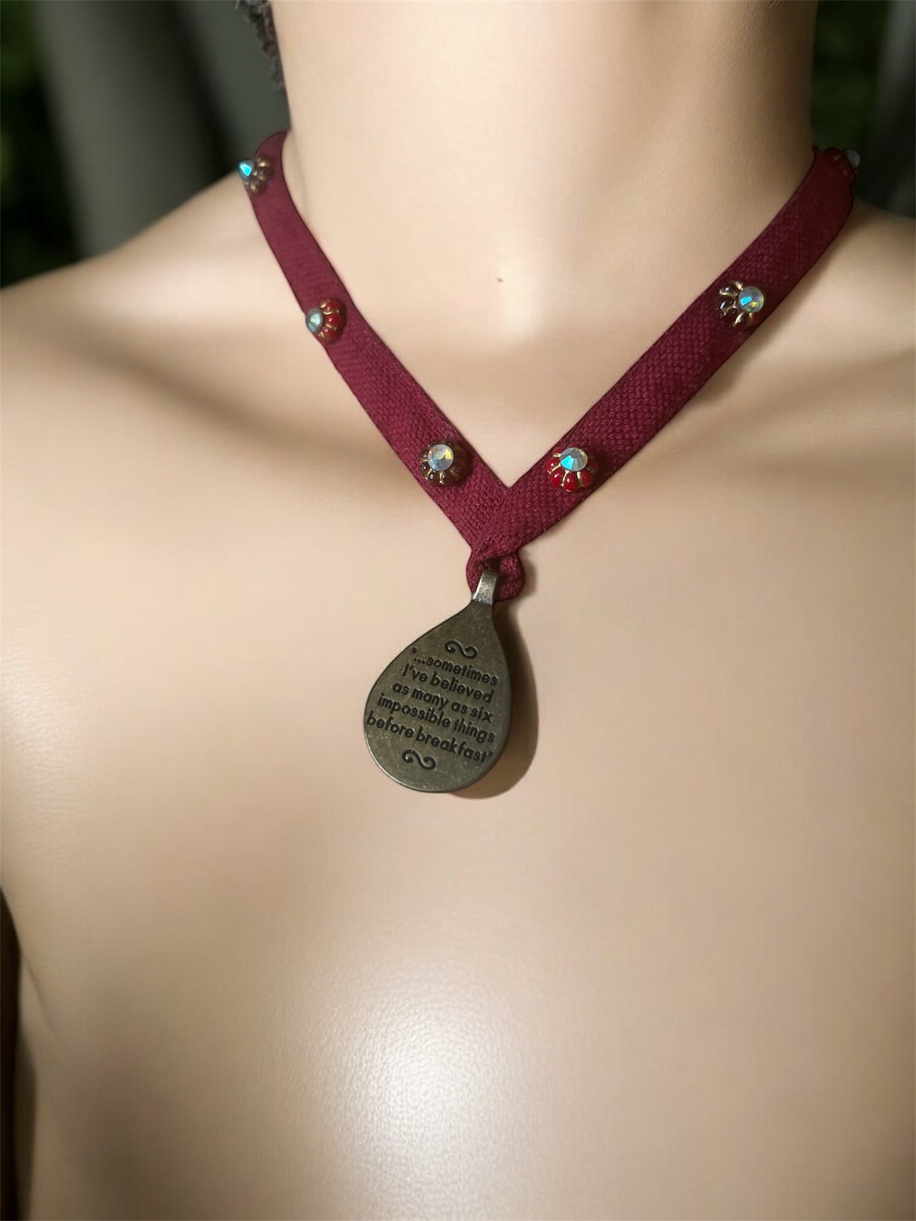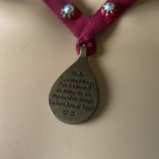 This unique, handmade Alice in Wonderland necklace is a striking conversation piece that captures the whimsy and charm of the classic tale. Expertly crafted with attention to detail, it offers a one-of-a-kind accessory that sparks curiosity and complements any outfit with a touch of storybook magic. Ideal for collectors and fans seeking an extraordinary, wearable work of art.